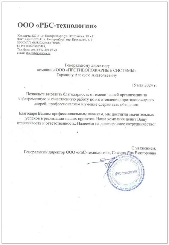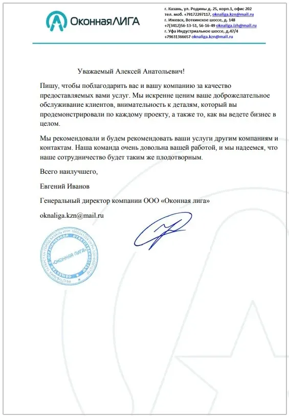 Благодарственные письма